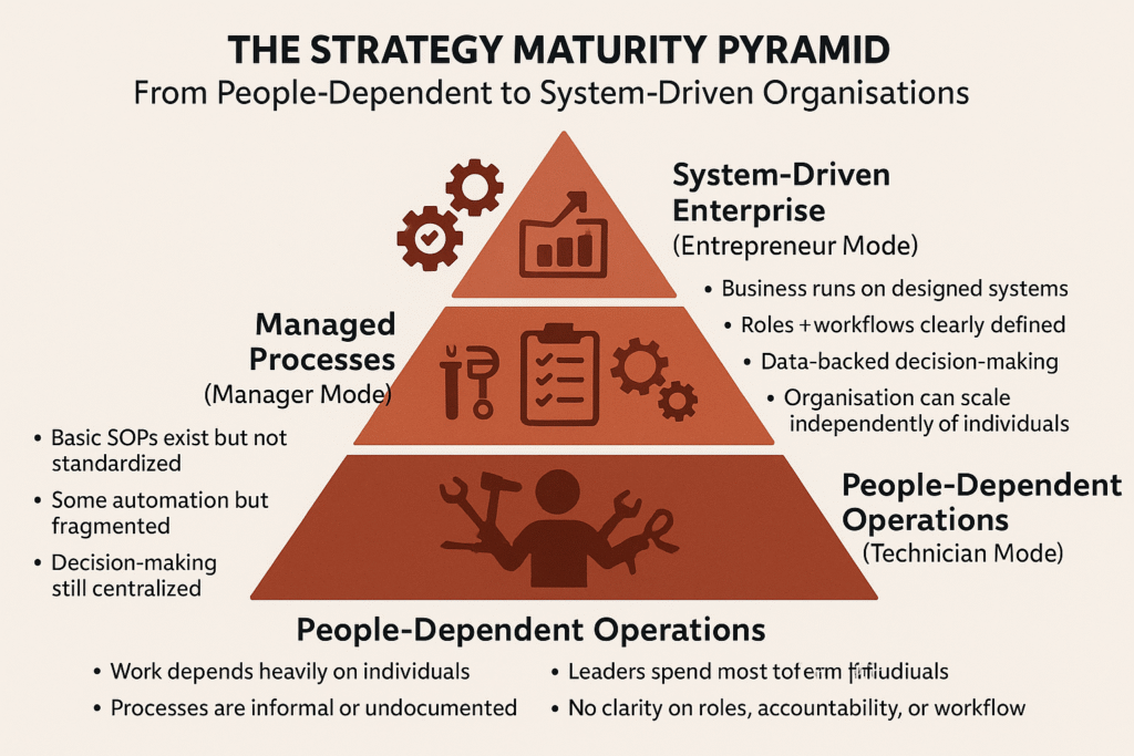 Indian businesses today face the exact challenge Gerber warned about years ago, they’ve grown bigger than their internal structure can support. Markets are changing faster than the systems built to manage them, and organizations are struggling because the business still relies heavily on individuals instead of clearly defined, replicable processes.